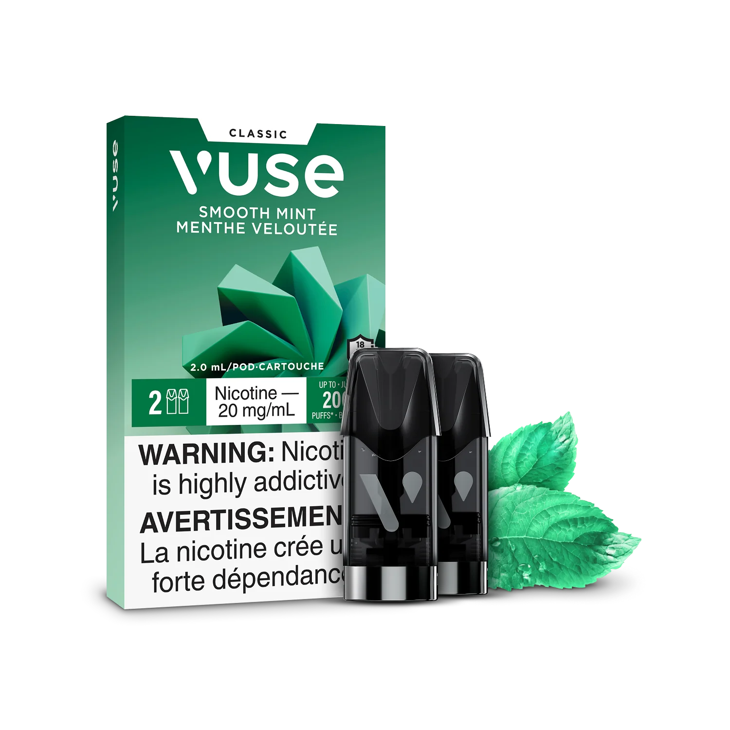 A pack of 2 Smooth Mint vape pods featuring a warm note, balanced by a cool, mint softness.