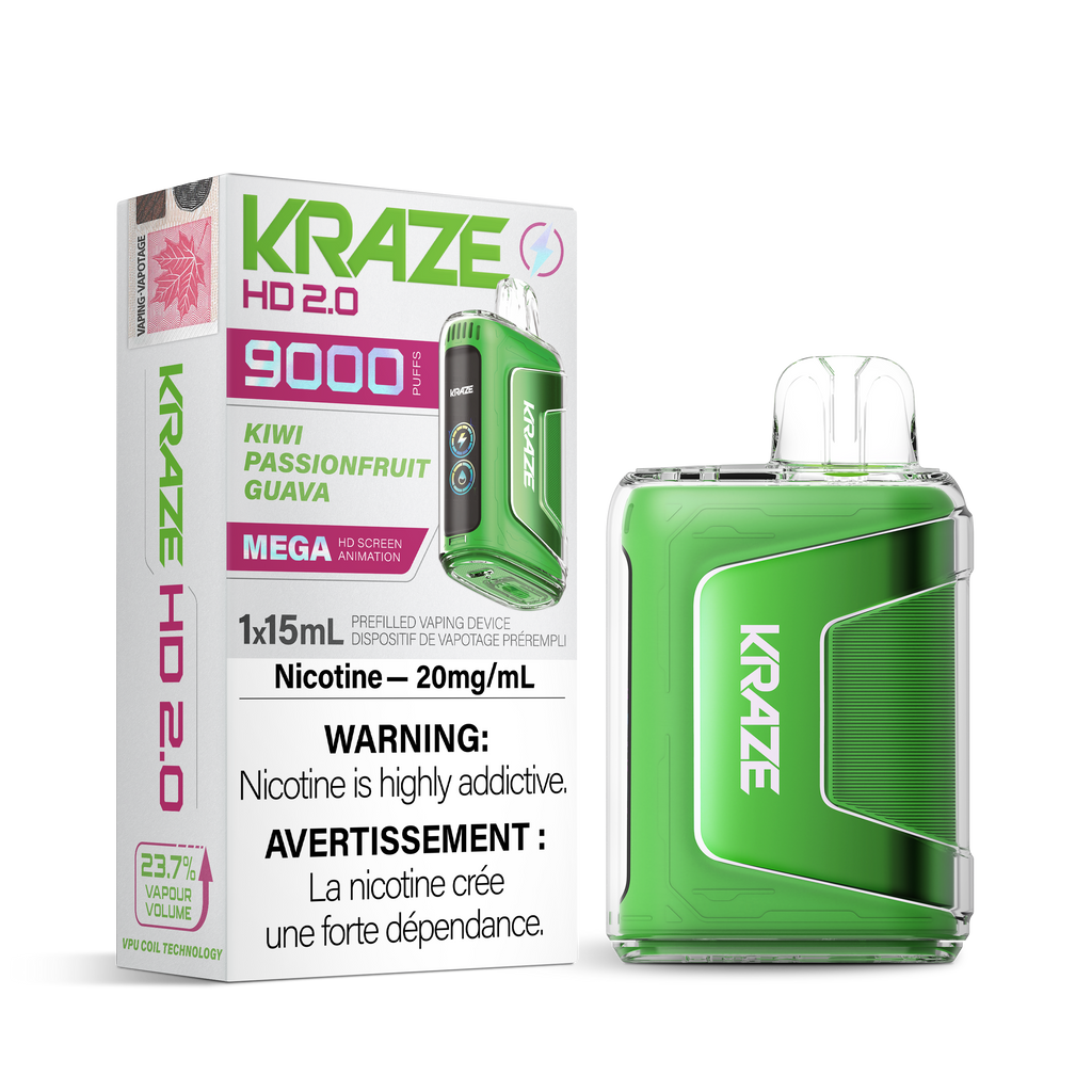 The Kraze HD 2.0 delivers up to 9000 satisfying puffs for a high-performance vaping experience.