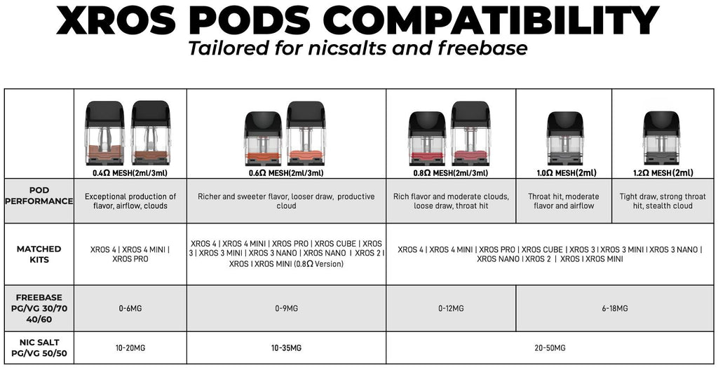 0.4 ohm- Only compatible with VAPORESSO XROS PRO POD KIT
